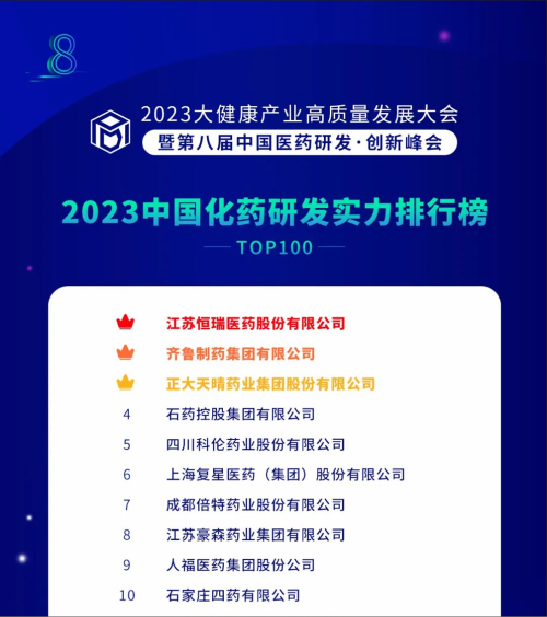 由药智网、中国药业杂志社主办的2023大健康产业高质量发展大会暨第八届中国医药研发•创新峰会于6月16日开幕,会上发布了《2023中国药品研发实力排行榜》系列榜单,BBIN宝盈医药凭借深厚的创新研发实力再创辉煌:荣登《2023中国药品研发综合实力排行榜TOP100》榜首、《2023中国化药研发实力排行榜TOP100》榜首。值得一提的是,今年是BBIN宝盈医药连续第6年入选《中国药品研发综合实力排行榜》榜首。